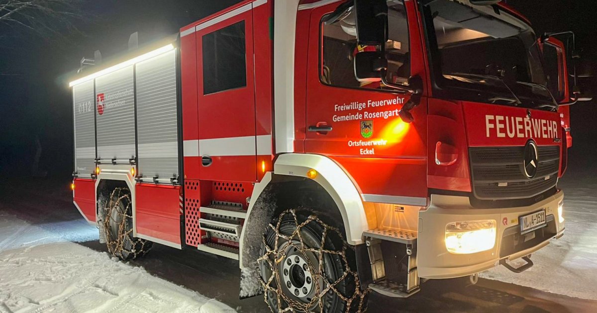 Wegen der angekündigten Wetterlage mit möglichen Schneeverwehungen haben wir vorsorglich an unserem LF KatS Schneeketten aufgezogen. Damit sind wir für mögliche winterliche Straßenverhältnisse zusätzlich vorbereitet.