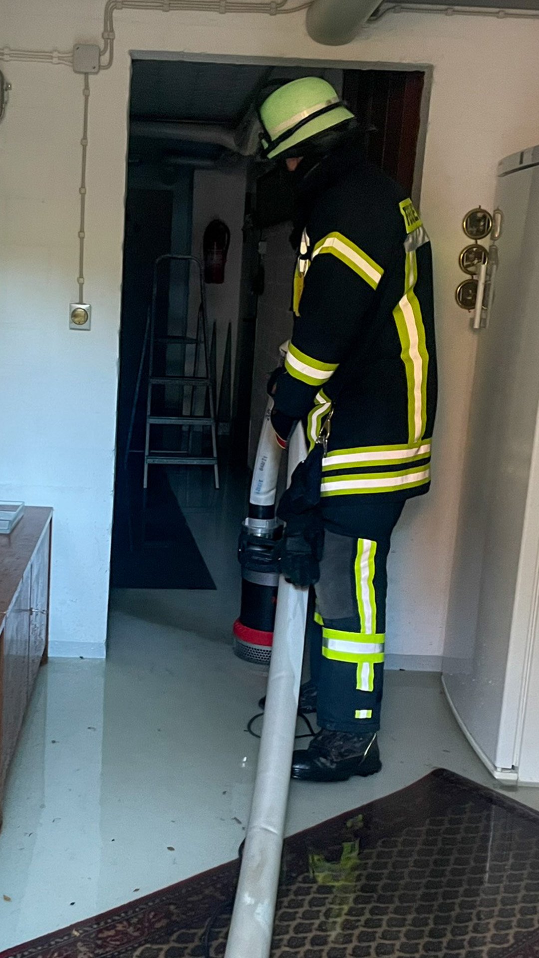 Bei Eintreffen bestätigte sich die Lage: In einem Wohnhaus war die Hauptwasserleitung gebrochen, wodurch Wasser in den Keller eindrang. Die Feuerwehr schieberte die Hauptleitung ab, um den Wasseraustritt zu stoppen. Im Anschluss wurde der Keller mit einer Tauchpumpe vom Wasser befreit.